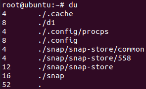 옵션 없이 사용하면 현재경로의 모든파일, 하위디렉토리, 전체용량을 표시함