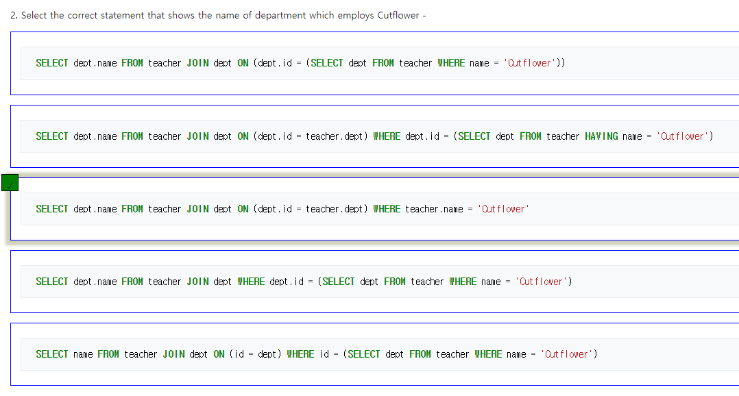 | SQL ZOO[MySQL]JOIN Quiz 2 (0) | 2022.03.15 |