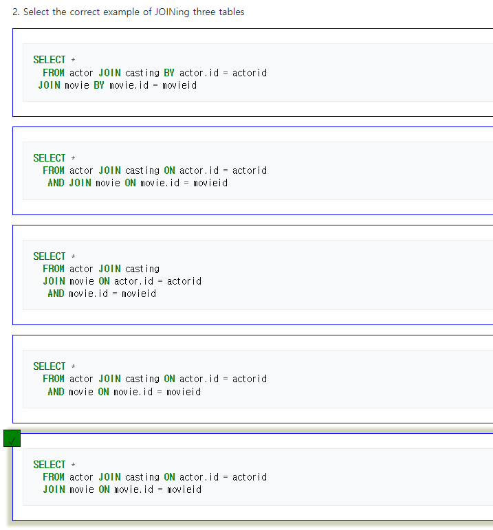 | SQL ZOO[MySQL] JOIN Quiz (0) | 2022.03.11 |
