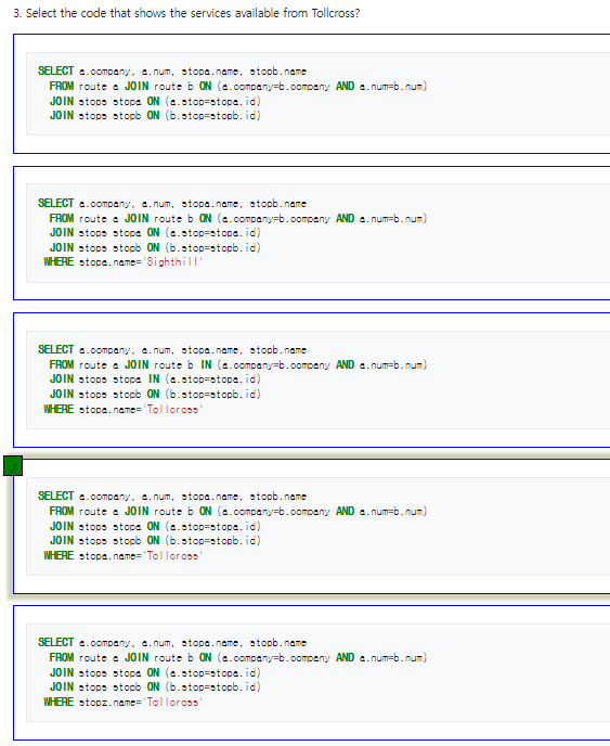 | SQL ZOO[MySQL]JOIN Quiz 2 (0) | 2022.03.15 |