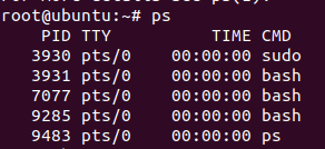 ○ps : 현재실행중인 프로세스의 목록, 상태를 보여주는 명령어