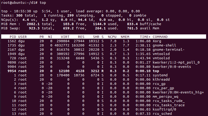 ○top : 실시간으로 CPU 사용률 체크 명령어