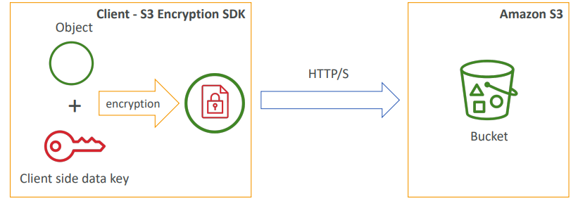 Amazon S3에 객체를 업로드하기 전 클라이언트[우리]가 객체를 암호화 하기 때문에 클라이언트가 완전히 키 및 암호화 주기를 완전히 관리함.