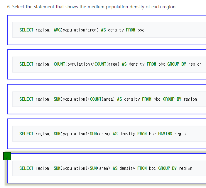 | SQL ZOO[MySQL] SUM and COUNT (0) | 2022.03.06 |