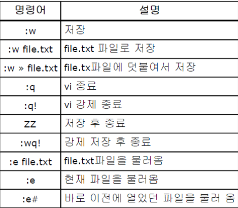 w[저장], q[종료], wq[저장후종료], wq![강제종료] 등