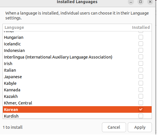 설치가 끝나면 한국어가 추가된 모습이 보입니다.