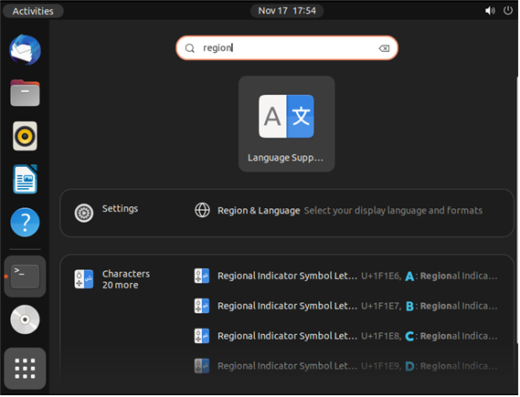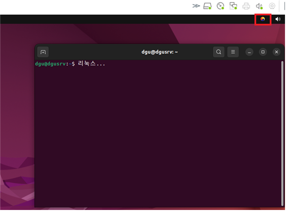 리부팅 후 다시 터미널을 열어보면 우측 상단에 표시된 키보드아이콘이 생기는데 이 부분을 선택합니다.